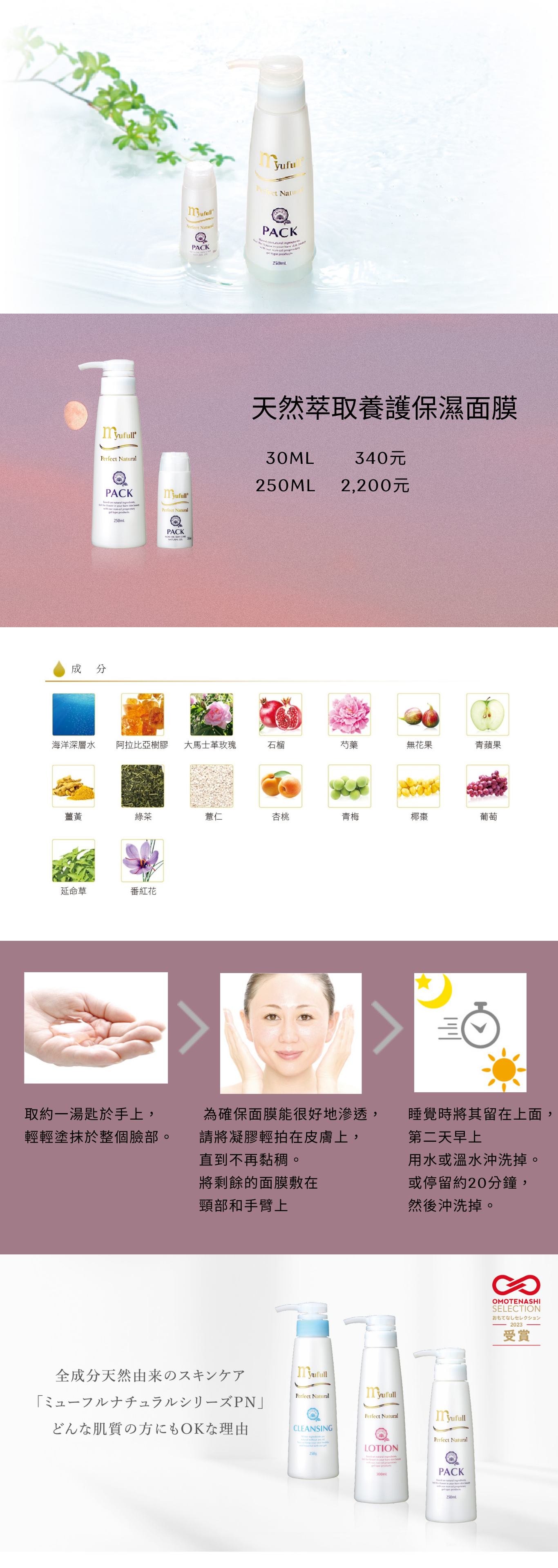 天然萃取養護保濕面膜